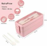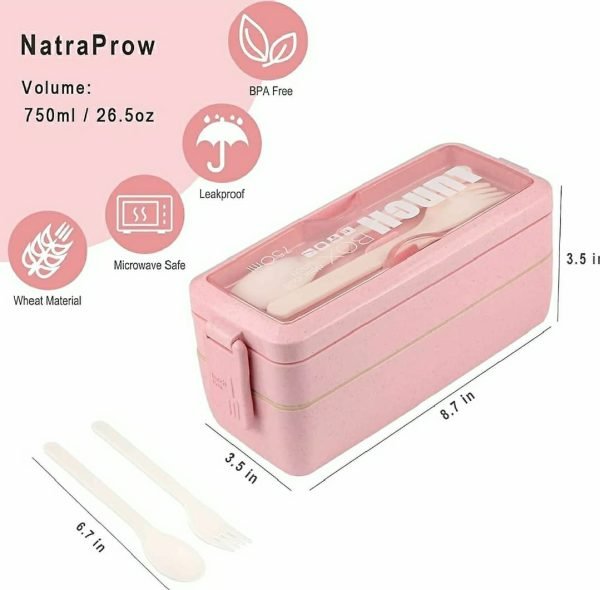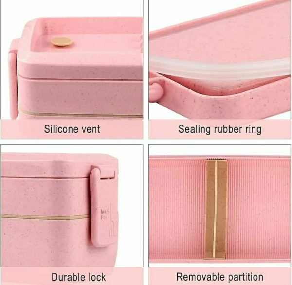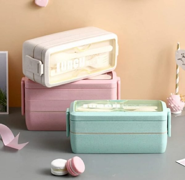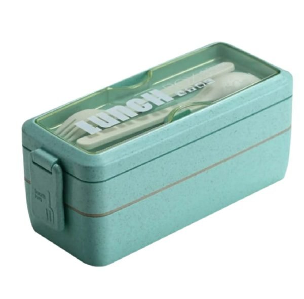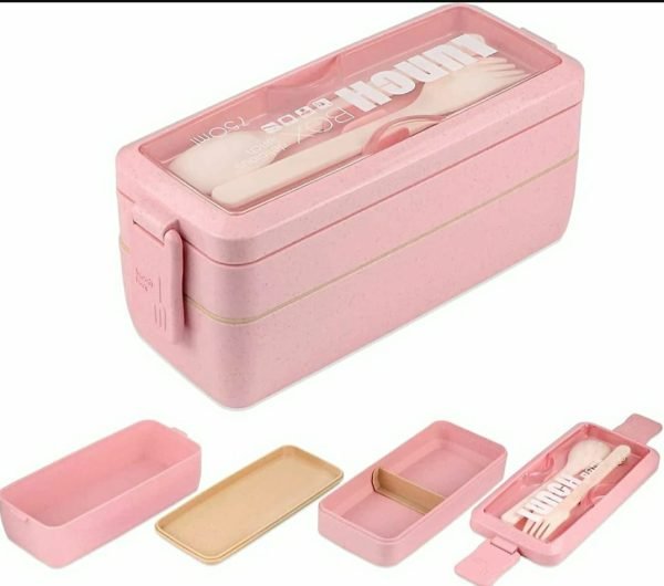 Bento Lunch Box for Adults/Kids – 2-Layer Leak-Proof Wheat Straw Meal Prep Container with Utensils, BPA-Free, Microwave & Dishwasher Safe ( Random Color )( Without Box )