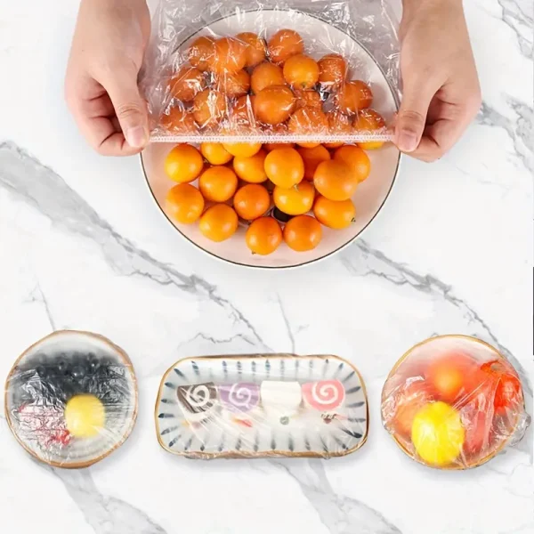- Elastic Plastic Foil With Elastic Band Easy To Use: When attached to top of the container, our food residue form a hermetic seal that keeps food fresh. You can use our reusable stretch lid plastic films over paper plates, glass bowls, paper bowls, and everything you need a cover for.